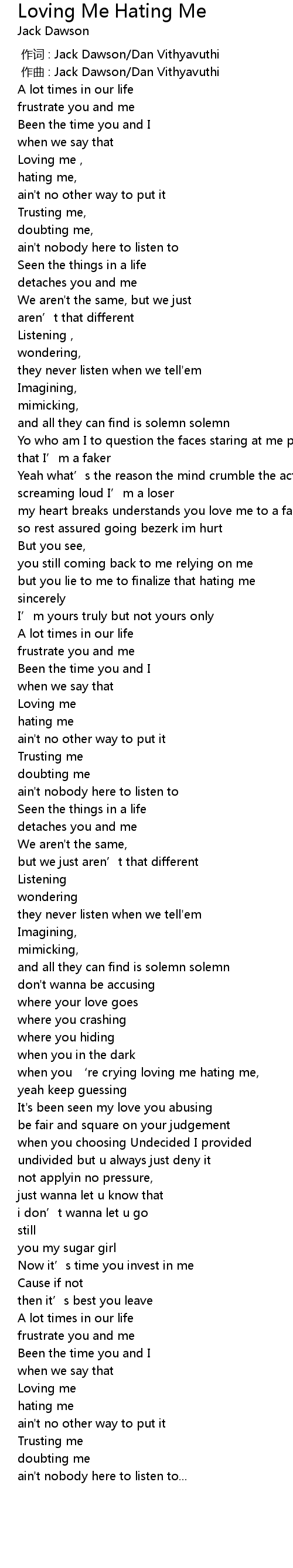 | [00:00.000] | 作词 : Jack Dawson/Dan Vithyavuthi |