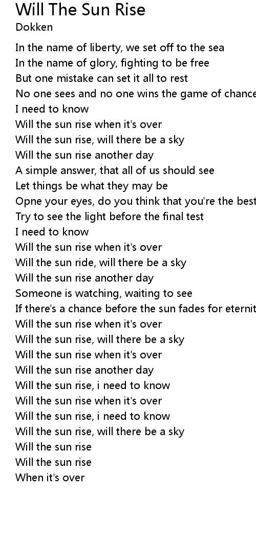 Will the sun rise, i need to know |