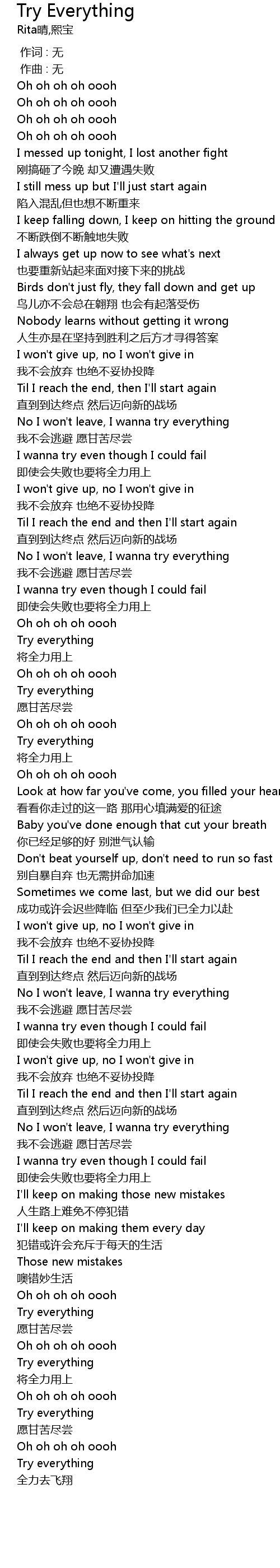 | [01:13.606] | No I won' t leave, I wanna try everything |