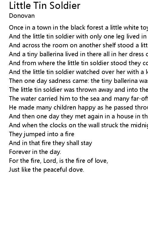 | And the little tin soldier watched over her with a love that was so dear. | |