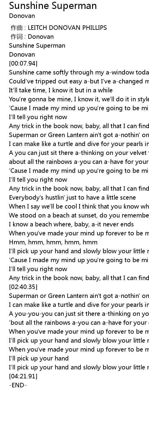 | [00:01.58] | Sunshine Superman |