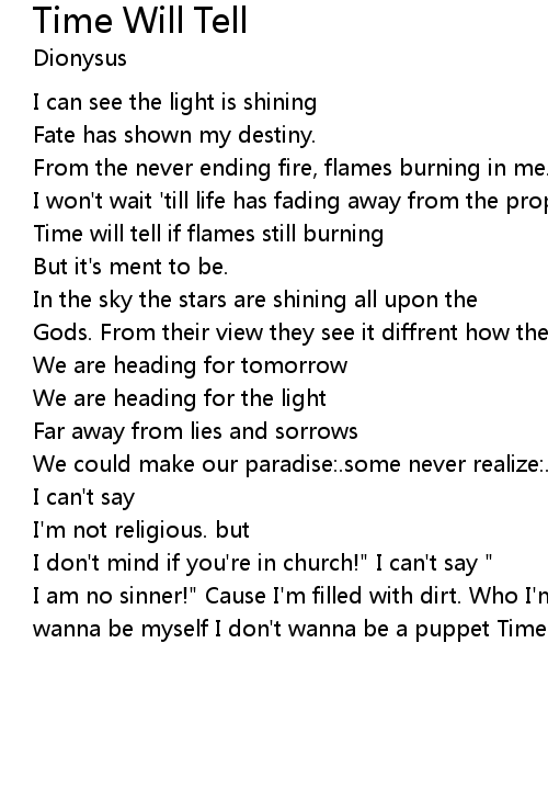 I am no sinner!" Cause I'm filled with dirt. Who I'm I to judge somebody? I just wanna be myself I don't wanna be a puppet Time to come will tell:.. |