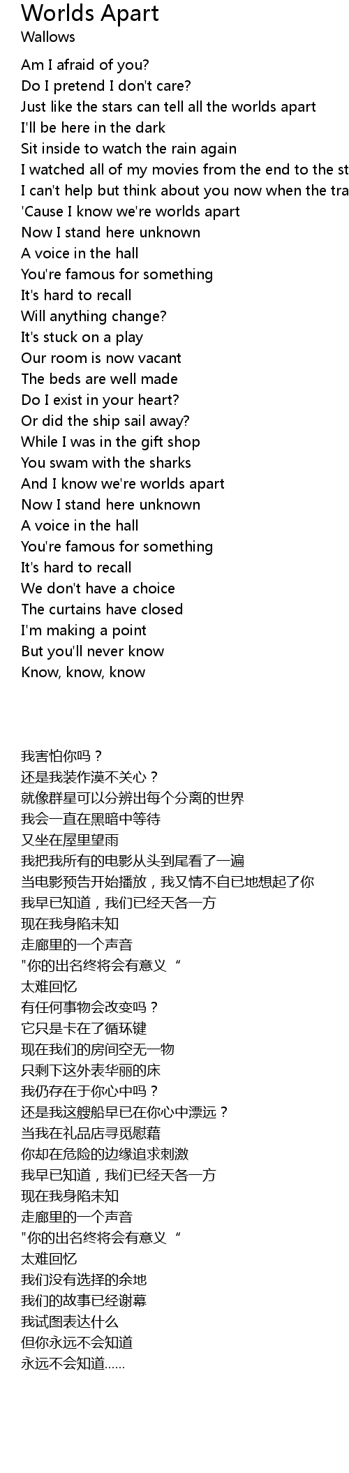 'Cause I know we're worlds apart |