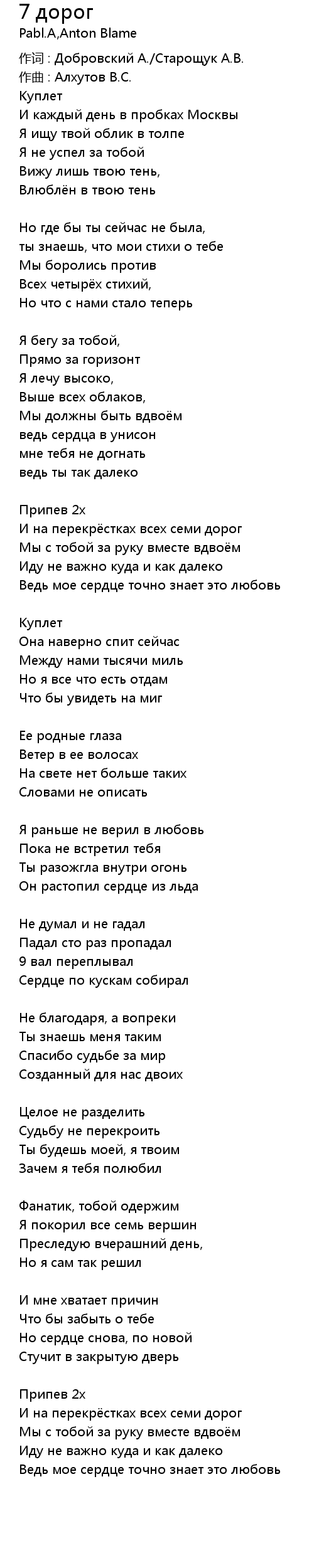 И на перекрёстках всех семи дорог |