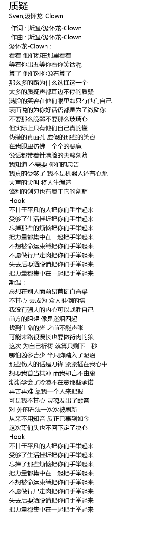 | [00:00.000] | 作词 : 斯温/汲怀龙-Clown |