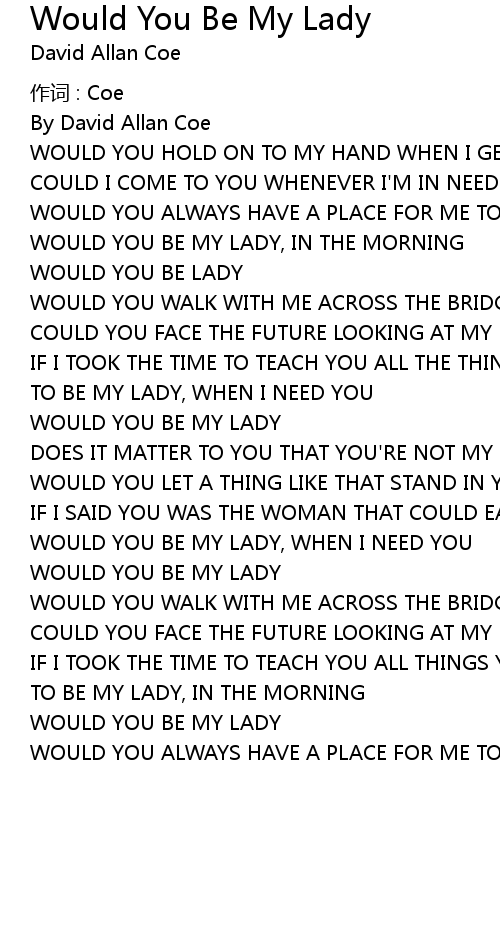 | WOULD YOU BE MY LADY | |