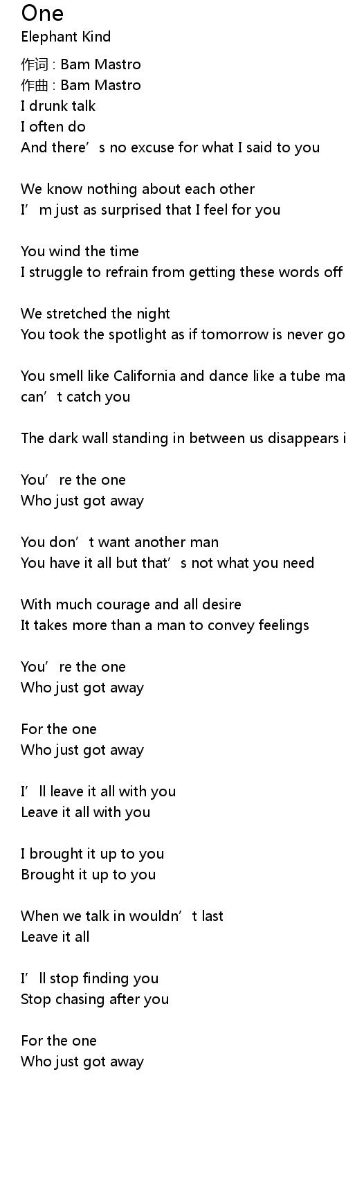 | 作词 : Bam Mastro | |