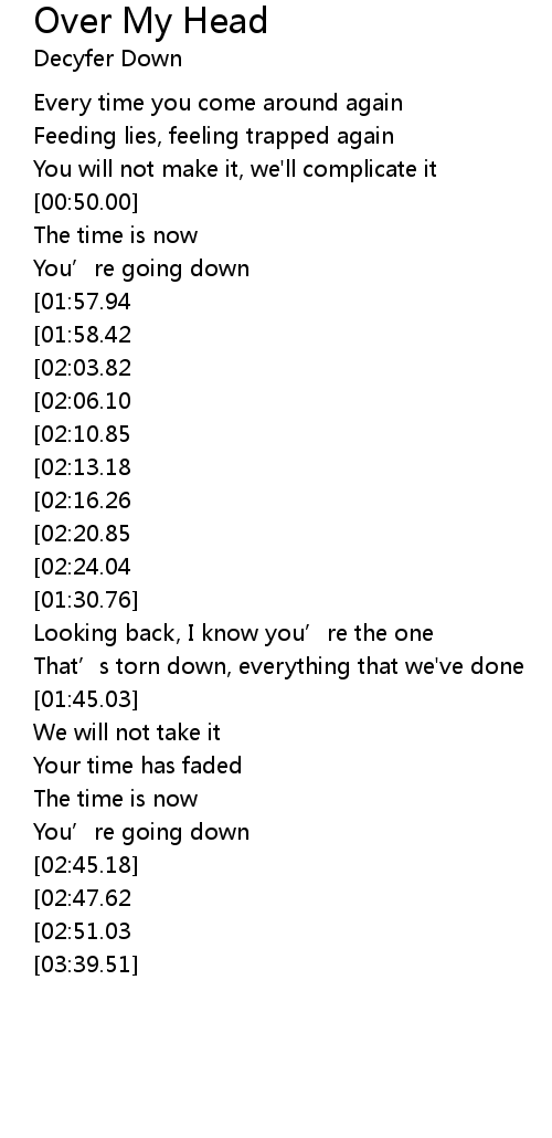 | [03:01.91][01:58.42][00:56.67] | When I' m in over my head |
