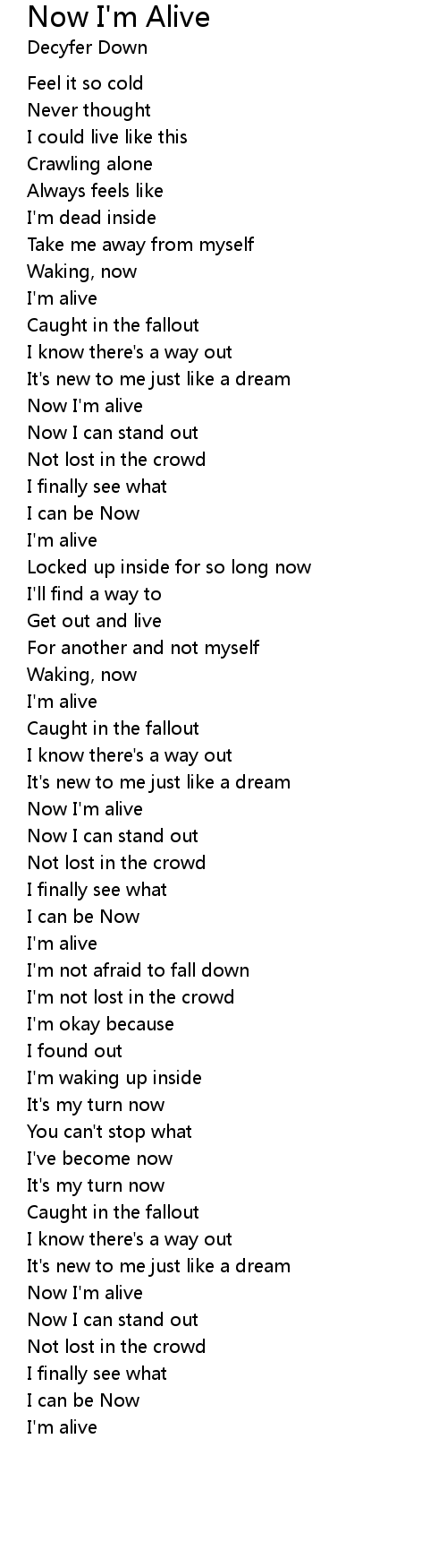 Now I'm alive |