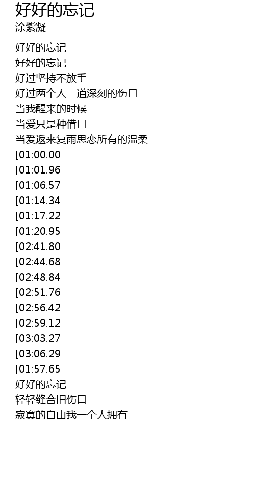 | [02:12.83][01:00.00] | 好好的忘记 |