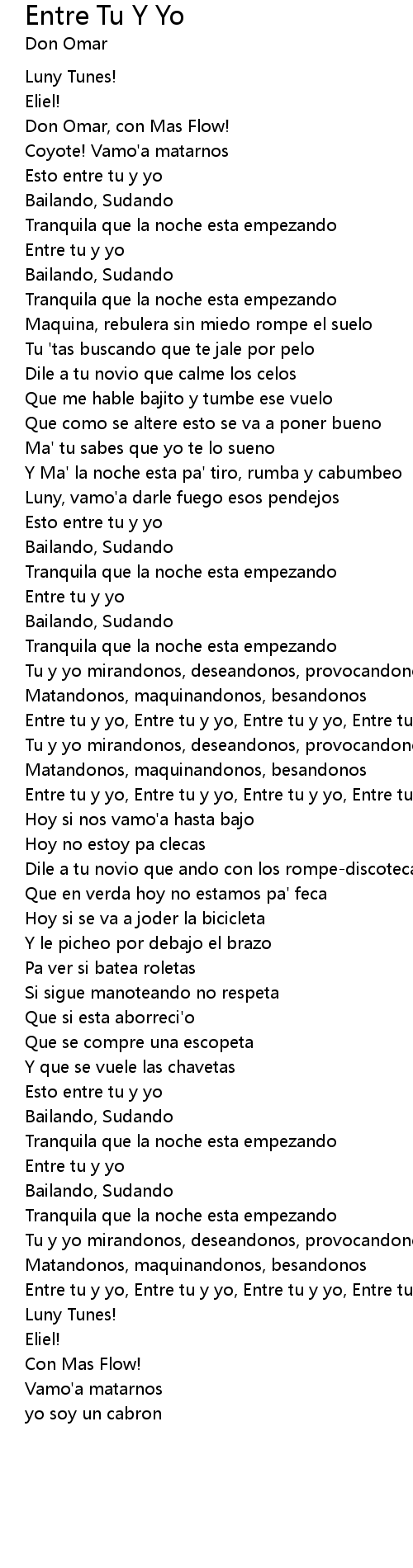 Entre tu y yo, Entre tu y yo, Entre tu y yo, Entre tu y yo |