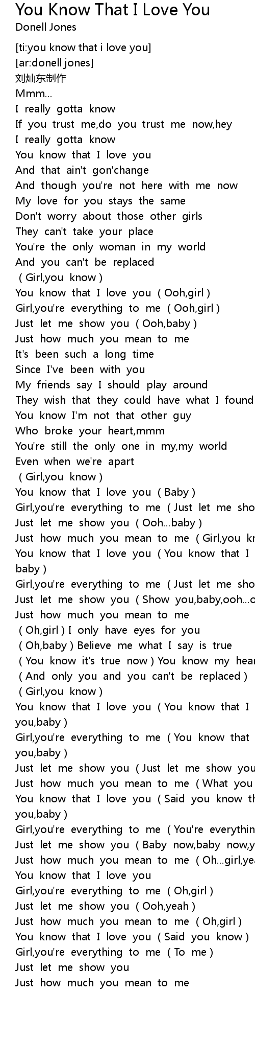 | [04:00.942] | You know that I love you (Said you know) |