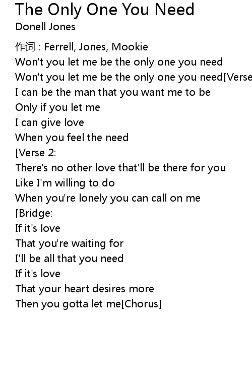 | Won' t you let me be the only one you need Verse 1: | |