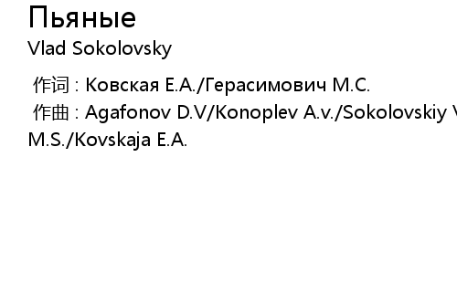 | [00:00.000] | 作曲 : Agafonov D.V/Konoplev A.v./Sokolovskiy V.a./Gerasimovich M.S./Kovskaja E.A. |