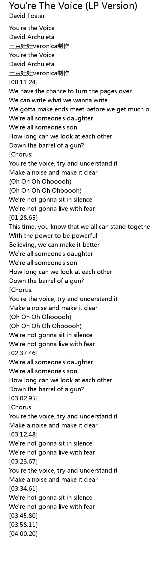 | [00:01.60] | You're the Voice |