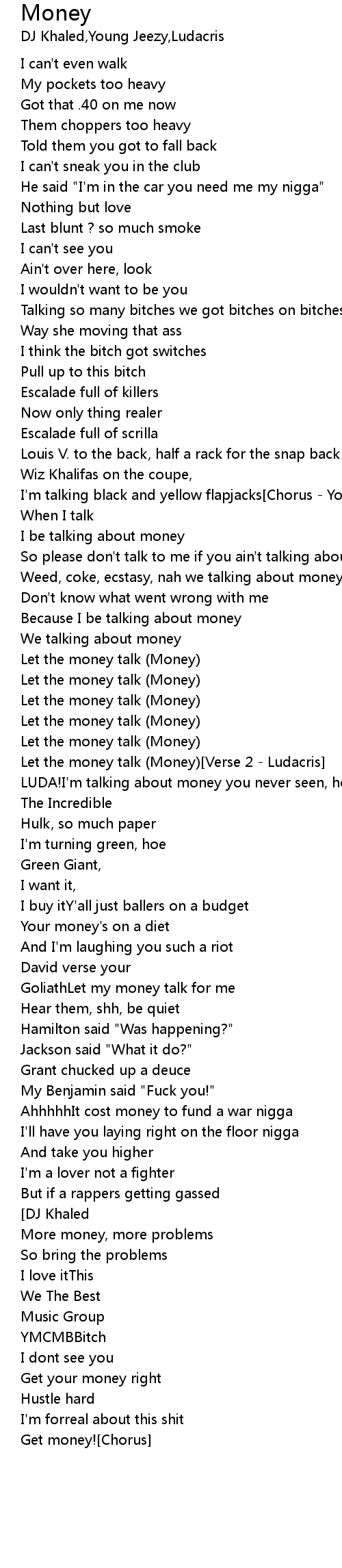 Let the money talk (Money)[Verse 2 - Ludacris] |