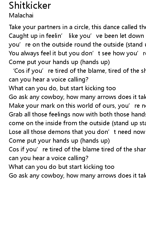 | Take your partners in a circle, this dance called the shitkicker | |