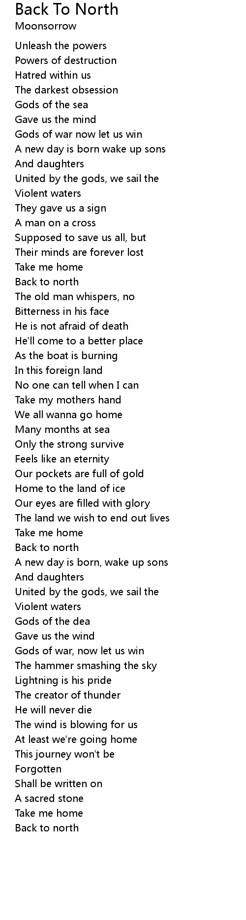Back To North Lyrics