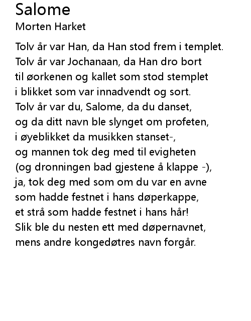 | Tolv r var du, Salome, da du danset, | |