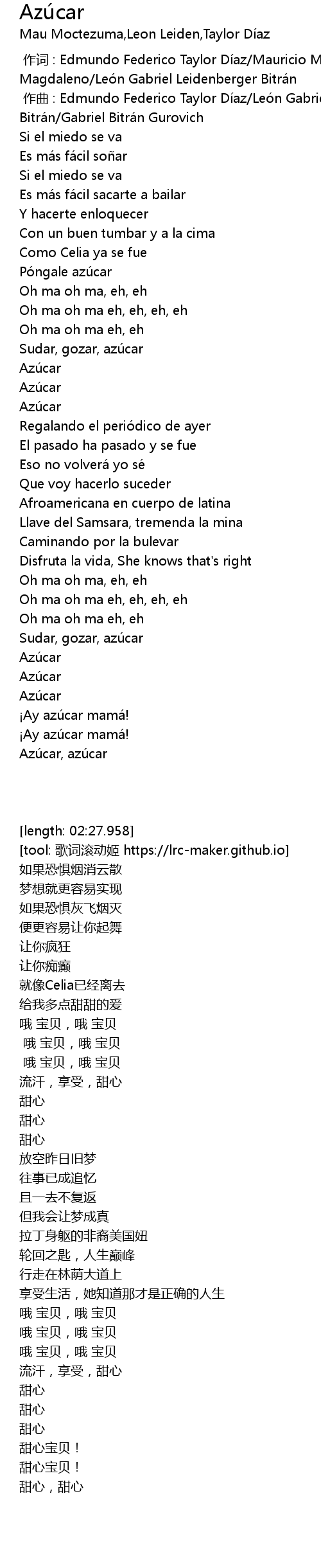 | [02:06.493] | ¡Ay azúcar mamá! |