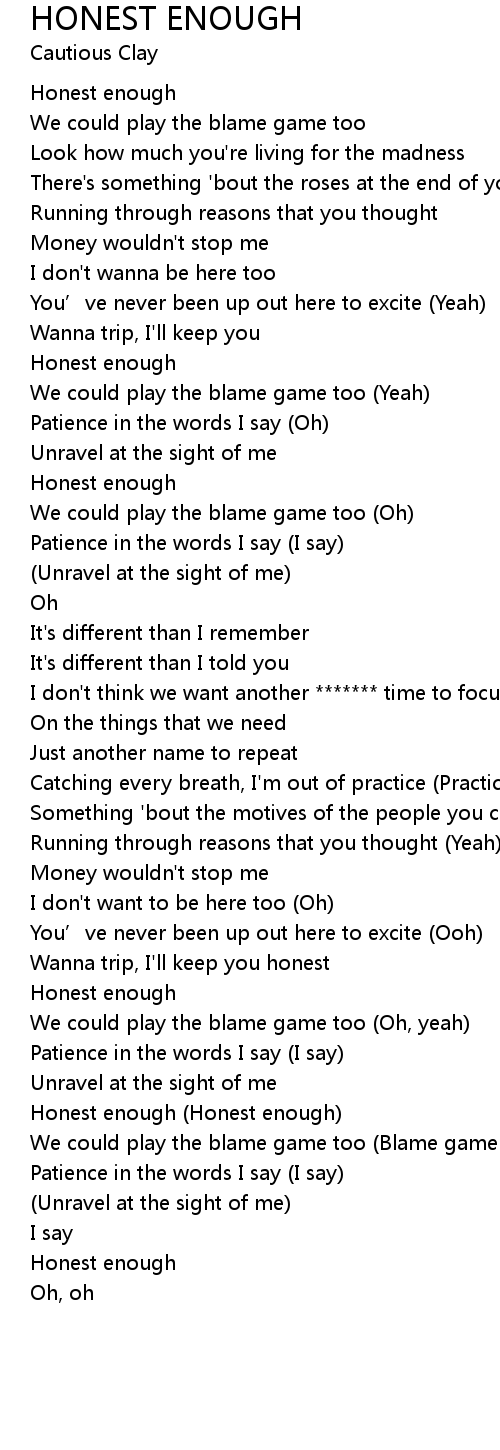 | [02:20.67] | Honest enough (Honest enough) |