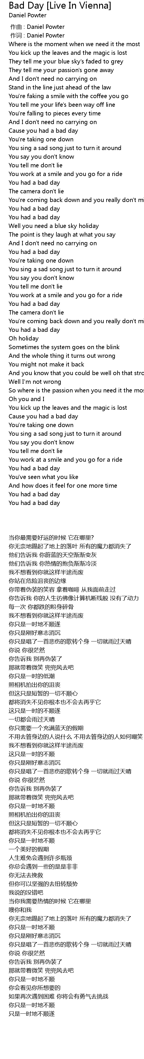 | Song | Bad Day [Live In Vienna] |
