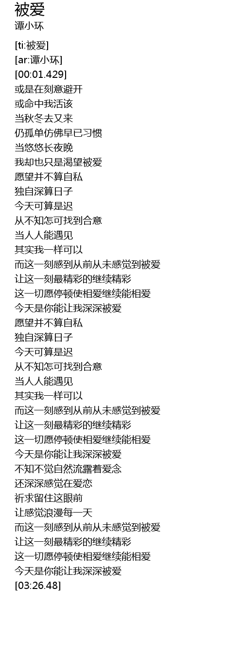 | [00:31.199] | wǒ què yě zhǐ shì kě wàng bèi ài |