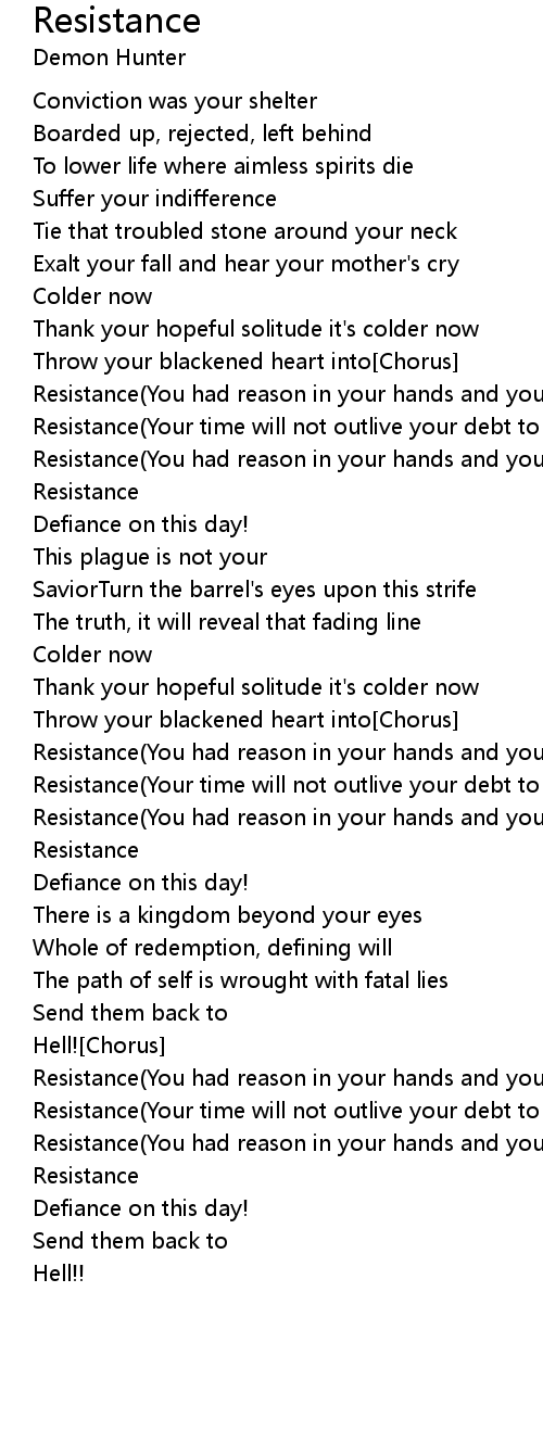 Resistance(You had reason in your hands and you walked away) |