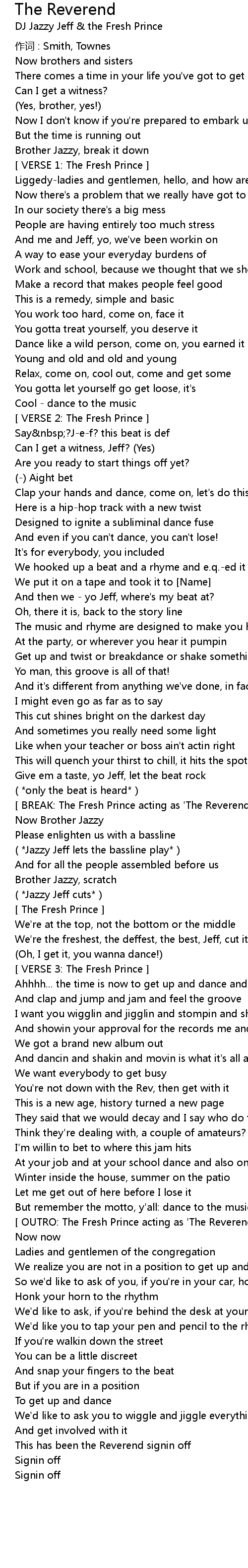 | [ OUTRO: The Fresh Prince acting as 'The Reverend' ] | |