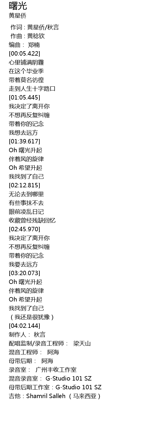 | [00:00.000] | 作词 : 黄星侨/秋言 |