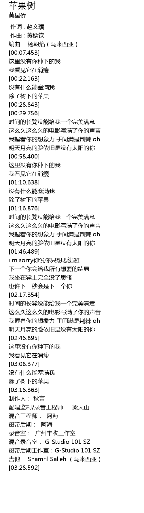 | [03:26.293] | 母带后期工作室:G-Studio 101 SZ |