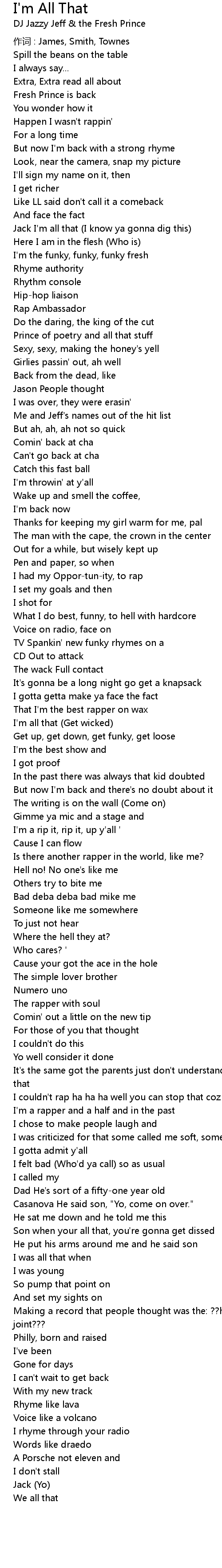| Song | I'm All That |