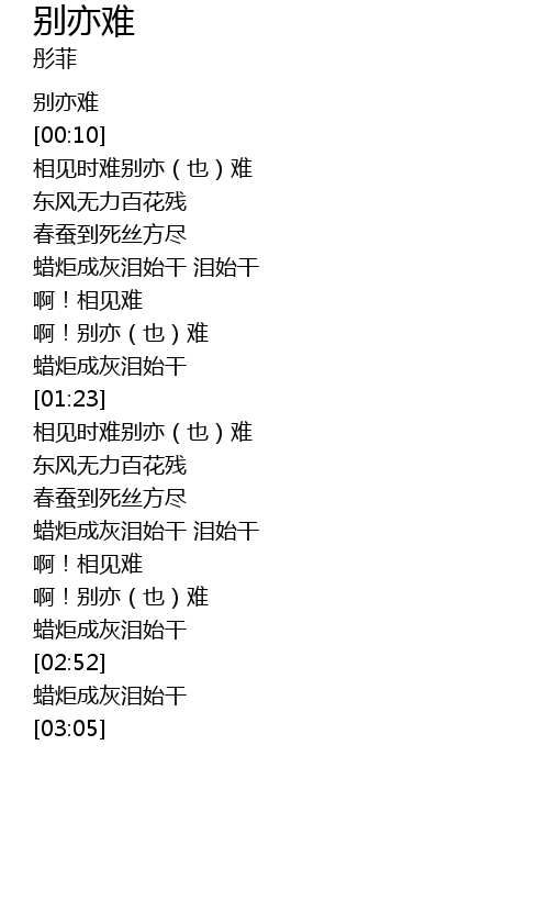 | [00:20] | 相见时难别亦(也)难 |