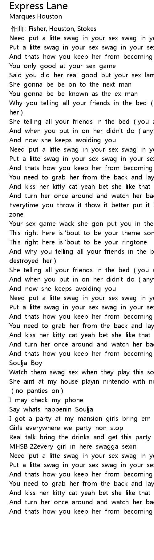 | [02:36.67] | Need put a litte swag in your sex swag in your sex |