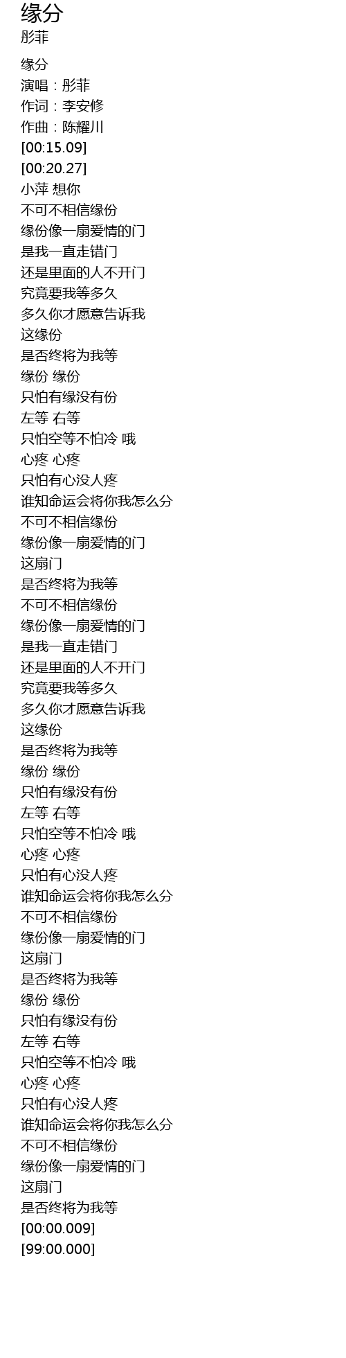 | [02:31.37] | 缘份 缘份 |