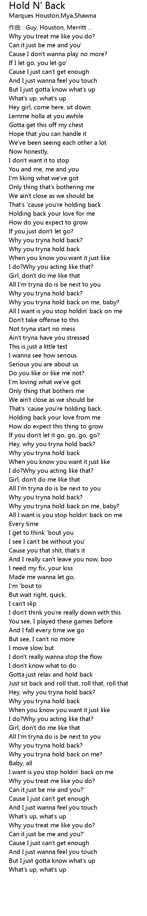 | All I want is you stop holdin' back on me | |