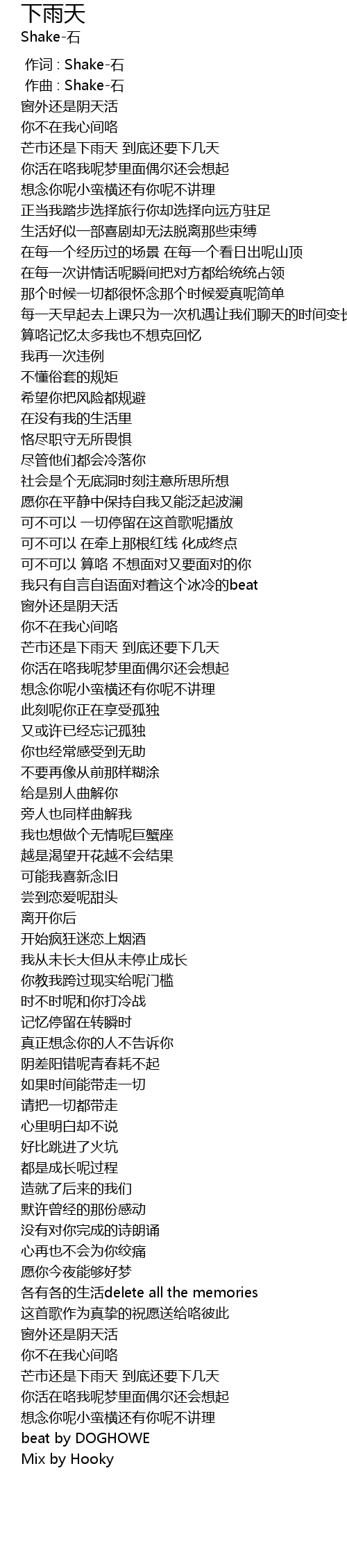 | [01:25.136] | máng shì hái shì xià yǔ tiān dào dǐ hái yào xià jǐ tiān |