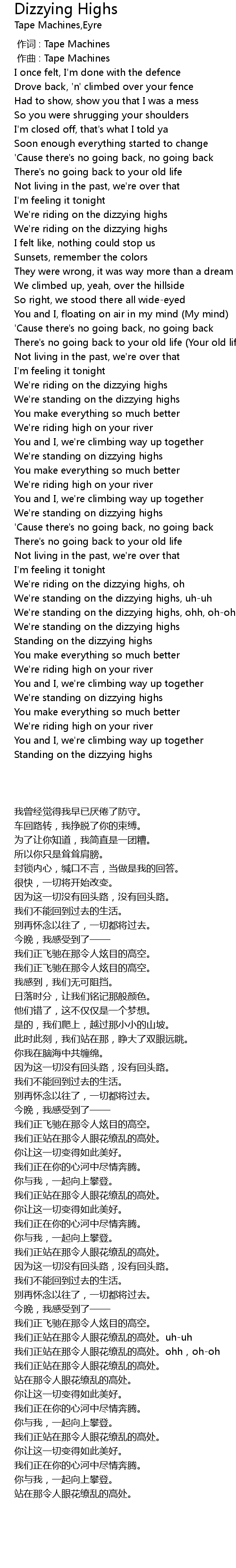 | [02:54.250] | We' re standing on the dizzying highs, ohh, ohoh |