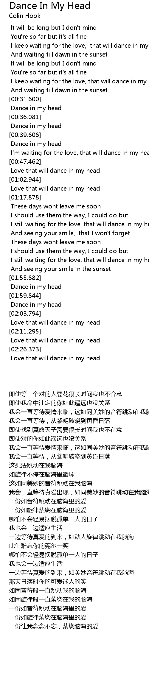 I still waiting for the love, that will dance in my head |