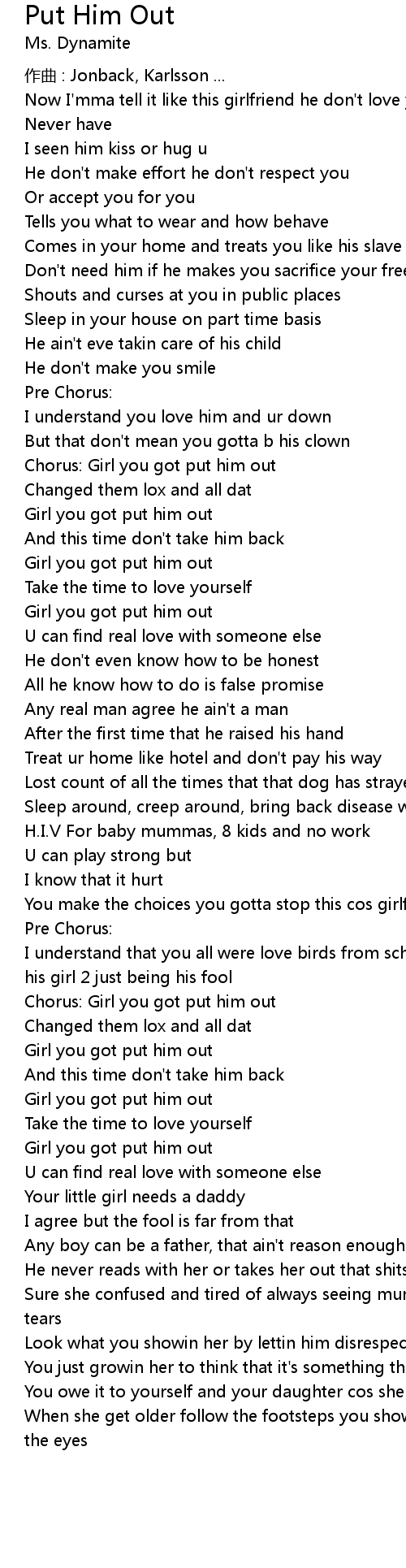 | Chorus: Girl you got put him out | |