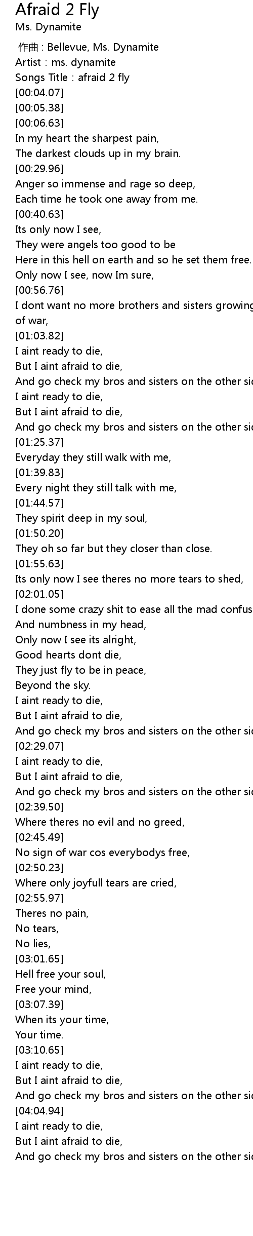 | [00:02.45] | Songs Title:afraid 2 fly |
