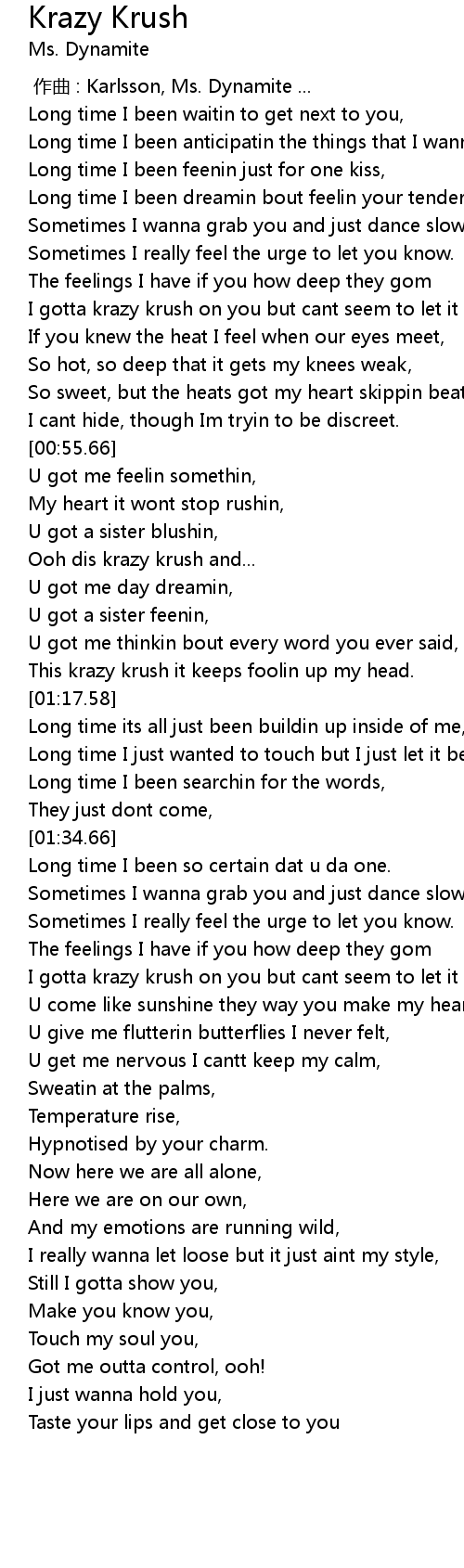 | [00:40.19] | I gotta krazy krush on you but cant seem to let it go. |