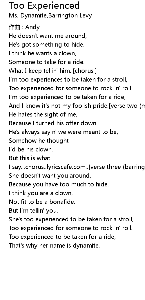 | And I know it' s not my foolish pride. verse two ms. dynamite: | |
