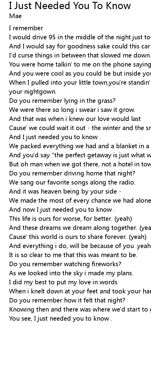 | You see, I just needed you to know . |