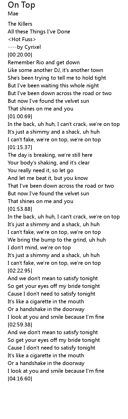 I don't mind, we're on top |