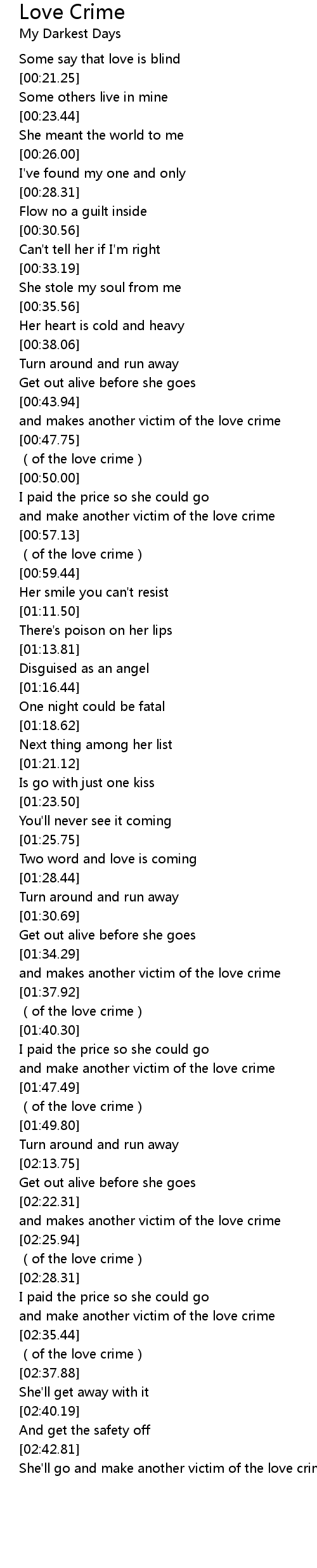 | [02:23.25] | and makes another victim of the love crime |