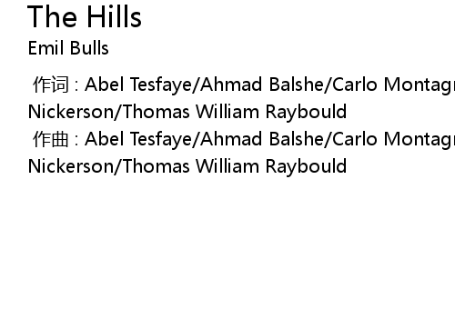 | [00:00.000] | zuò cí : Abel Tesfaye Ahmad Balshe Carlo Montagnese Emmanuel Nickerson Thomas William Raybould |