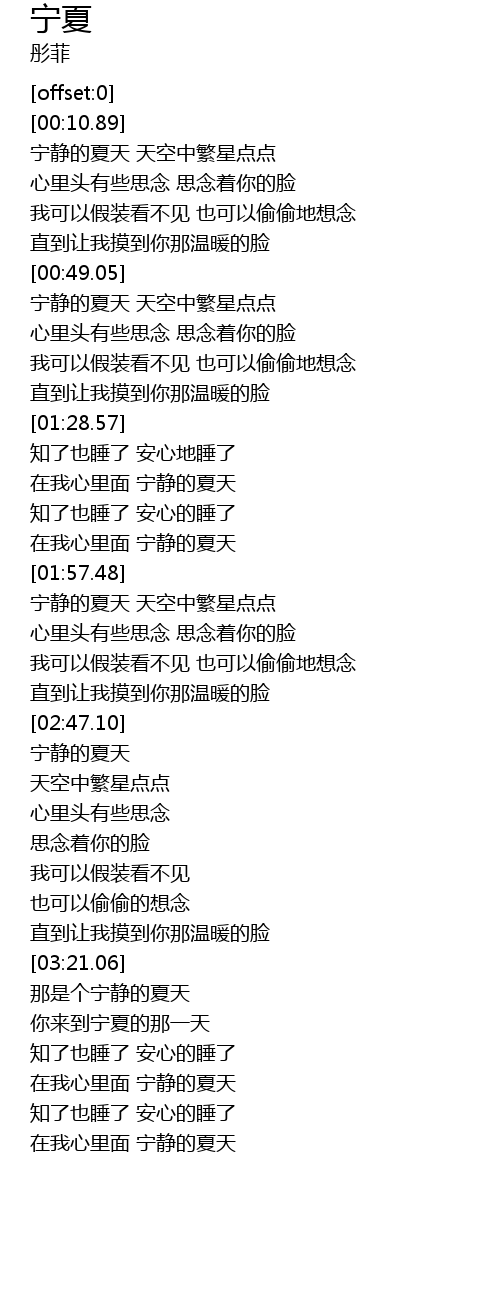 | [02:20.38] | níng jìng de xià tiān tiān kōng zhōng fán xīng diǎn diǎn |