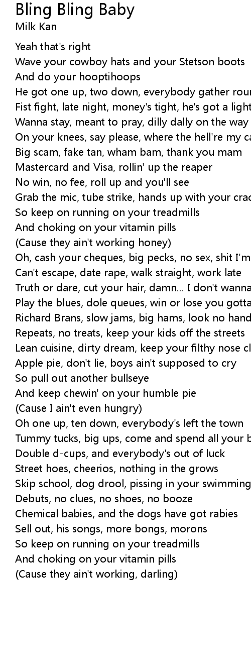 | Lean cuisine, dirty dream, keep your filthy nose clean | |