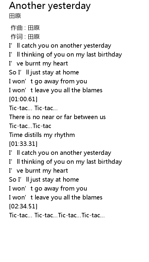 | [00:31.06] | I’ll catch you on another yesterday |